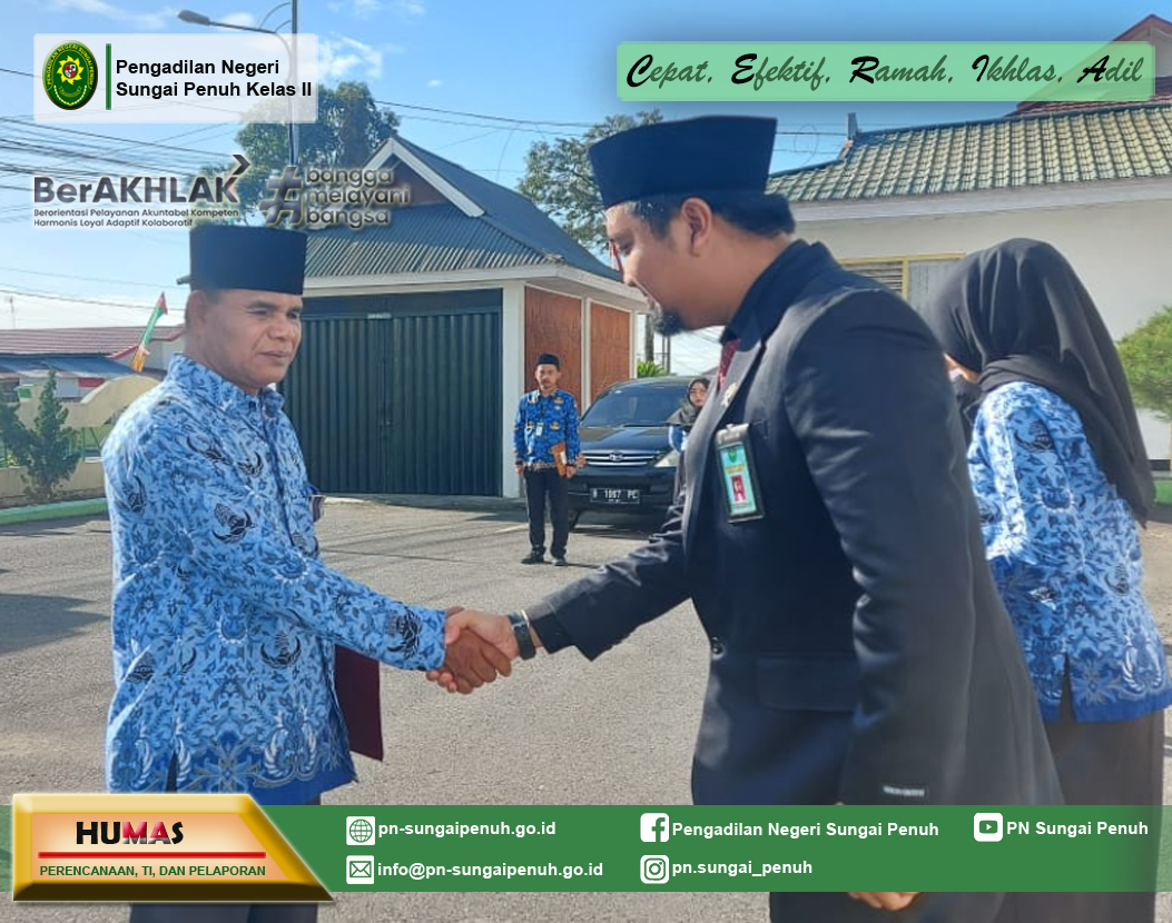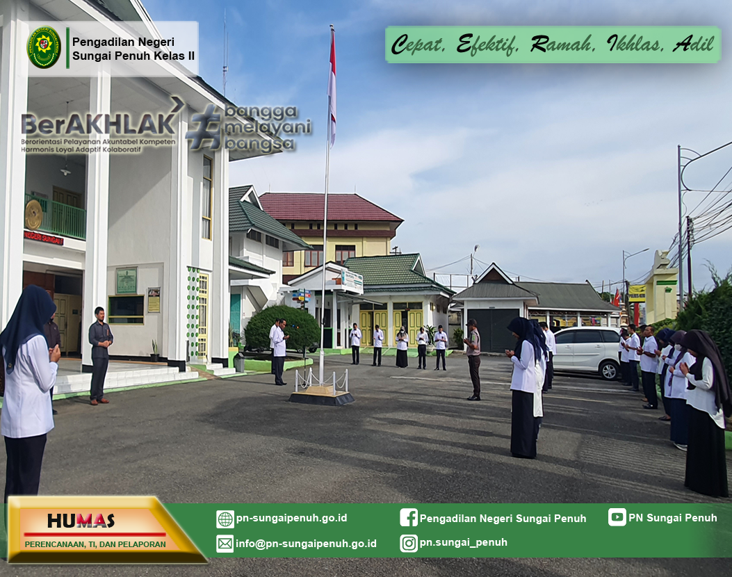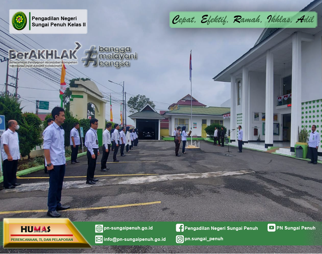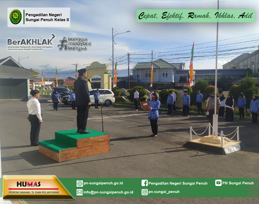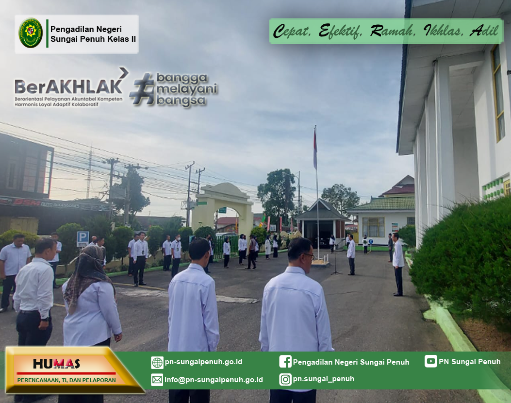 Pelaksanaan apel rutin pada Pengadilan Negeri Sungai Penuh pagi ini dipimpin oleh Ketua Pengadilan Negeri Sungai Penuh, Bapak Eka Prasetya Budi Dharma, S.H., M.H.