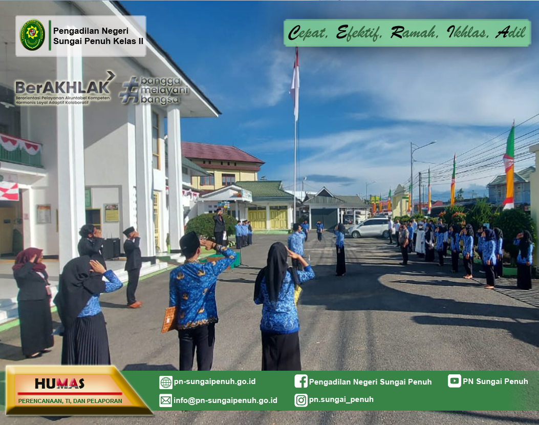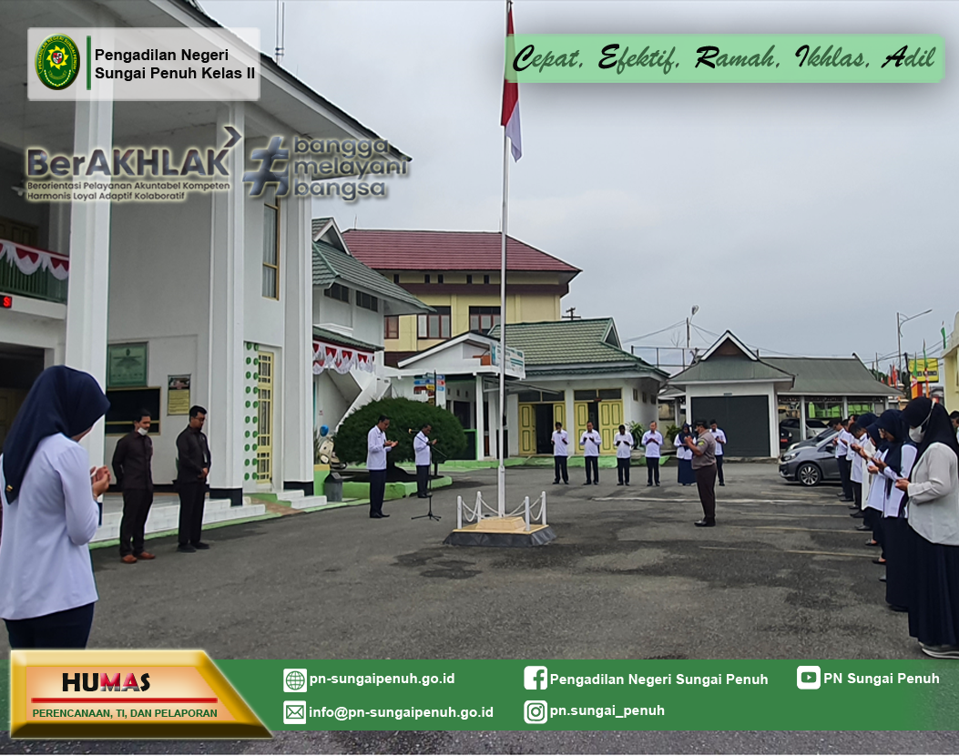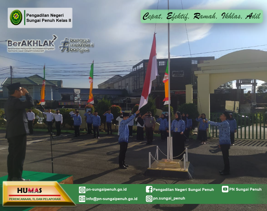 Bertempat di Pengadilan Negeri Sungai Penuh telah dilaksanakan upacara peringatan Proklamasi Kemerdekaan ke-77 Republik Indonesia, yang diikuti oleh seluruh Hakim dan Pegawai Pengadilan Negeri Sungai Penuh.