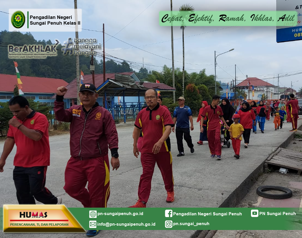 Acara yang diikuti oleh seluruh keluarga besar Pengadilan Sungai Penuh dan Pengadilan Agama Sungai Penuh ini diawali dengan jalan santai dari Pengadilan Sungai Penuh menuju Pengadilan Agama Sungai Penuh, yang kemudian dilanjutkan dengan rangkaian acara perlombaan yang berlangsung hingga selesai.