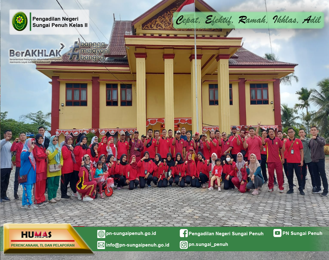 Seluruh keluarga besar pengadilan negeri sungai penuh mengikuti kegiatan olahraga Senam Pagi yang dilaksanakan di halaman kantor Pengadilan Negeri Sungai Penuh.