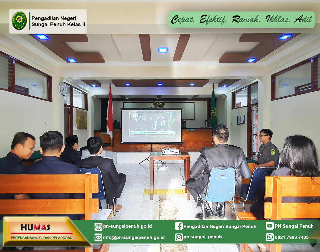 Seluruh hakim dan aparatur Pengadilan Negeri Sungai Penuh melaksanakan upacara peringatan Hari Lahir Pancasila yang bertempat di halaman depan gedung Pengadilan Negeri Sungai Penuh.