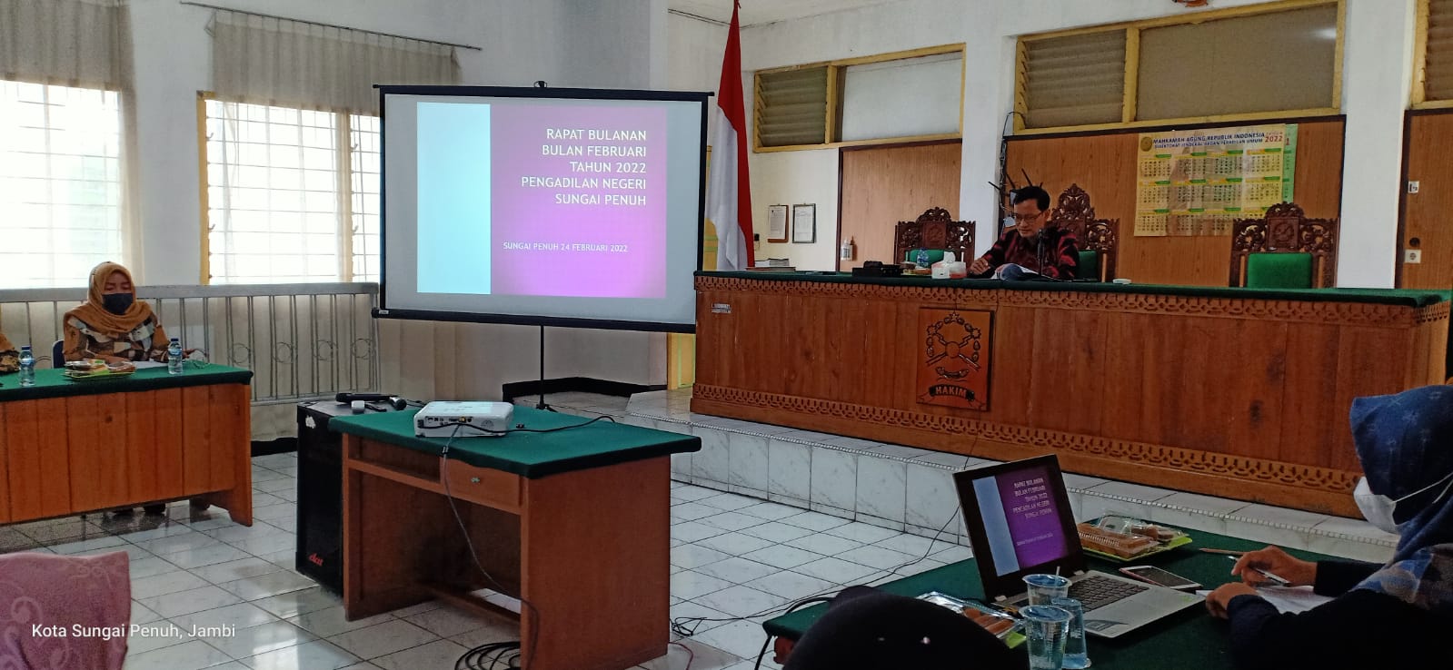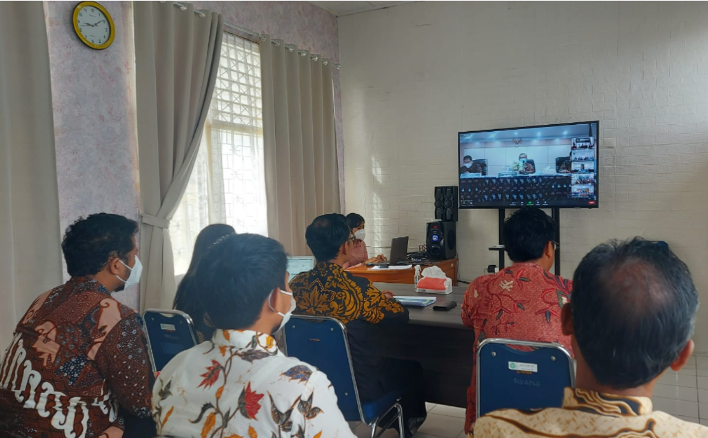 Ketua dan Staf Keuangan Pengadilan Negeri Sungai Penuh mengikuti siaran langsung Penyerahan Tindak Lanjut Pemeriksaan BPK pada Mahkamah Agung RI dan Pembukaan Peresmian Kegiatan Konsolidasi Laporan Keuangan Tahunan Tahun 2021.