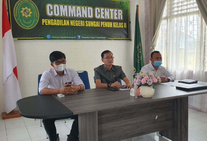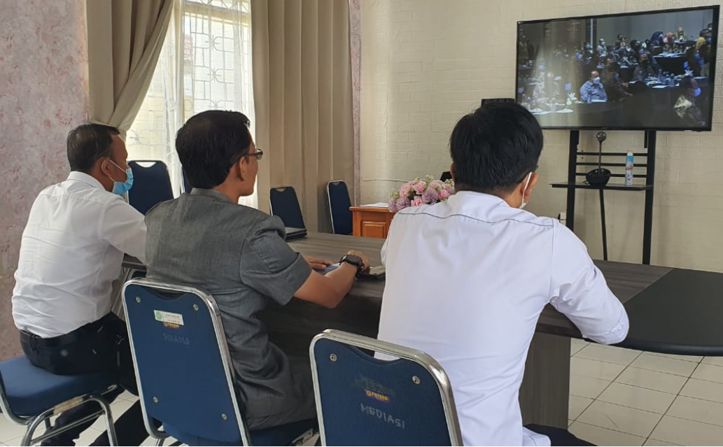 Ketua, para Hakim, Panitera, dan Sekretaris Pengadilan Negeri Sungai Penuh mengikuti Pembinaan Teknis dan Administrasi Yudisial secara virtual yang dibawakan oleh Ketua Mahkamah Agung RI, Bapak Prof. Dr. H. M. Syarifuddin, S.H., M.H.