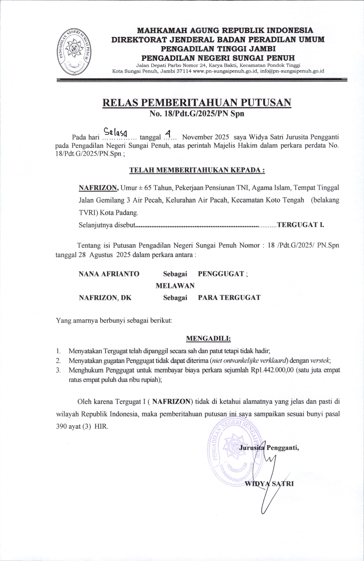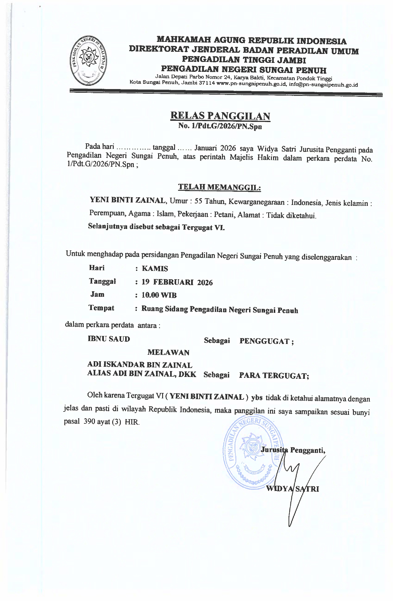 Panggilan Menghadiri Persidangan Perkara Nomor 1/Pdt.G/2026/PN.SPN