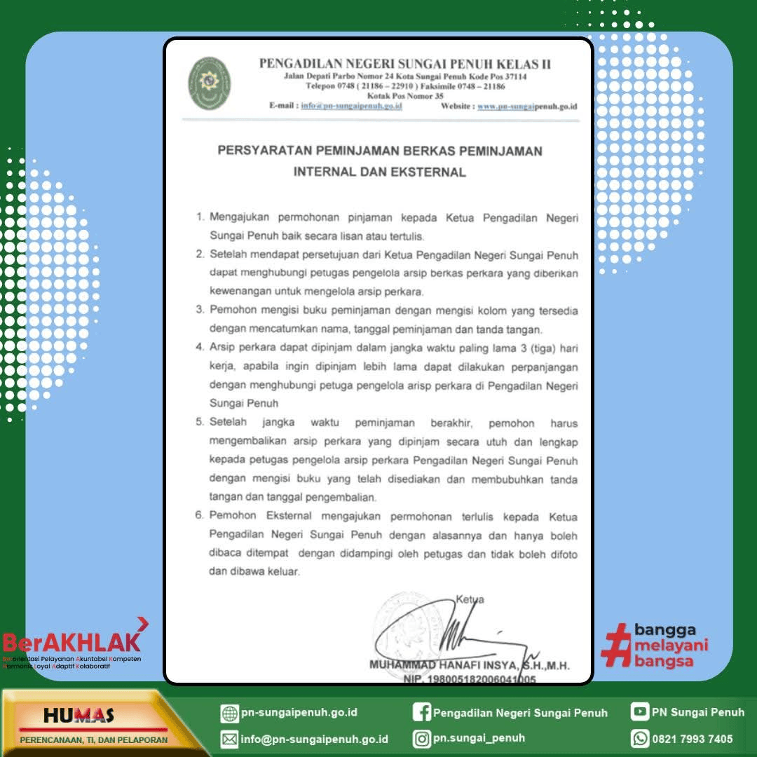 Berdasarkan Surat Keputusan Ketua Pengadilan Negeri Sungai Penuh Nomor 152/KPN.W5-U4/SK.OT1.1/XII/2025 Tentang Pembentukan Panitia Seleksi Lembaga Pemberi Layanan Pos Bantuan Hukum (POSBAKUM) Pada Pengadilan Negeri Sungai Penuh, dengan ini panitia akan melaksanakan seleksi lembaga pemberi layanan POSBAKUM untuk Tahun Anggaran 2026.