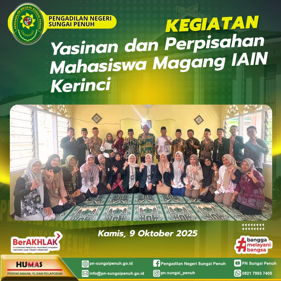 Sungai Penuh, Kamis, 13 November 2025 — Kepala Kejaksaan Negeri (Kejari) Sungai Penuh beserta jajaran melakukan kunjungan kerja ke Pengadilan Negeri (PN) Sungai Penuh. Kunjungan tersebut bertujuan untuk mempererat hubungan koordinasi dan sinergi antara kedua institusi penegak hukum di wilayah hukum Kota Sungai Penuh. Dalam kesempatan tersebut, rombongan Kejari Sungai Penuh disambut langsung oleh Ketua PN Sungai Penuh bersama para pejabat struktural. Pertemuan berlangsung hangat dan diisi dengan diskusi mengenai peningkatan kerja sama dalam penegakan hukum yang transparan, profesional, dan berintegritas. Kunjungan ini diharapkan dapat memperkuat komunikasi serta memperlancar pelaksanaan tugas masing-masing lembaga demi terciptanya pelayanan hukum yang lebih baik bagi masyarakat.