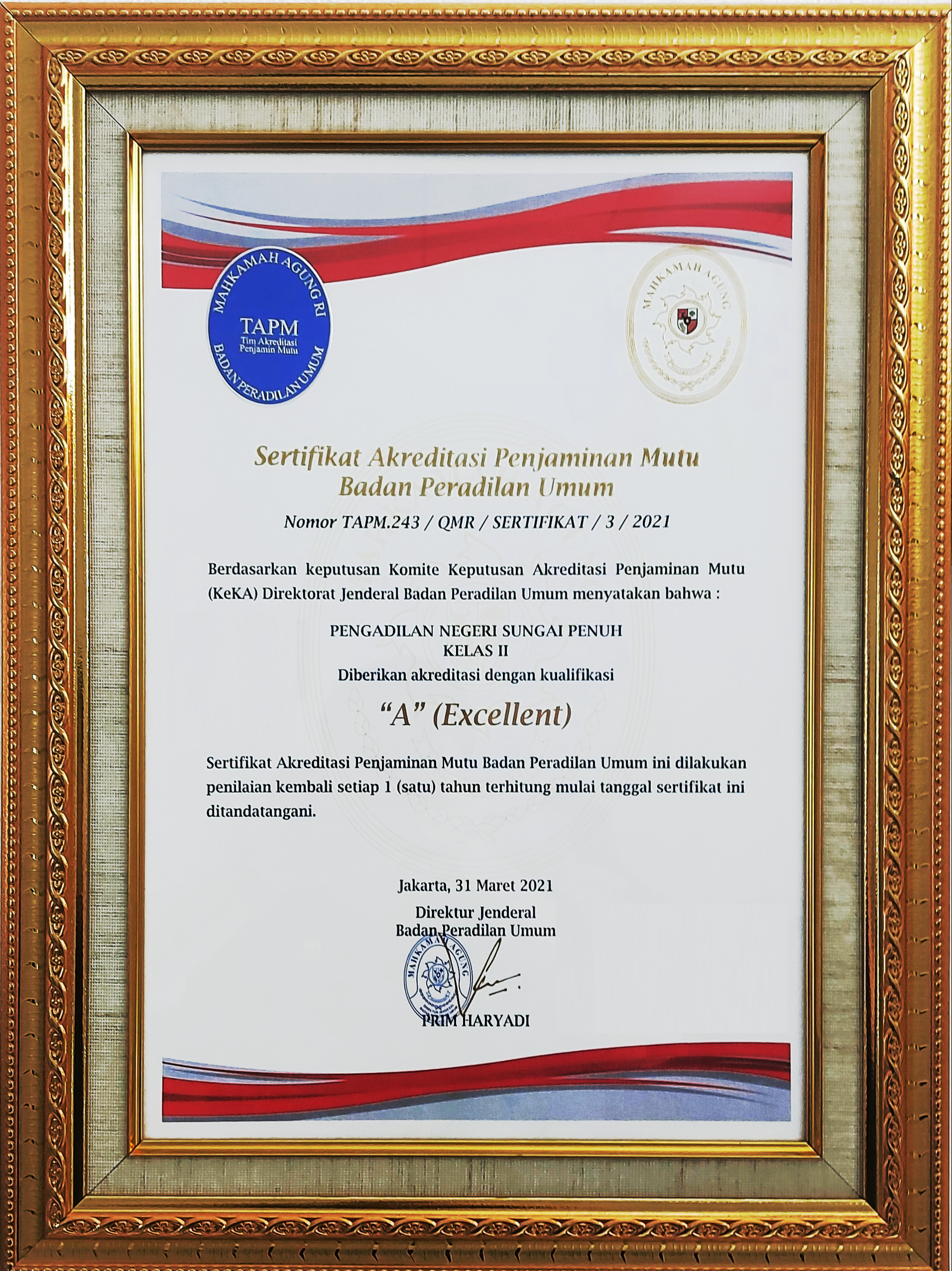 Akreditasi Penjaminan Mutu Badan Peradilan Umum 2021